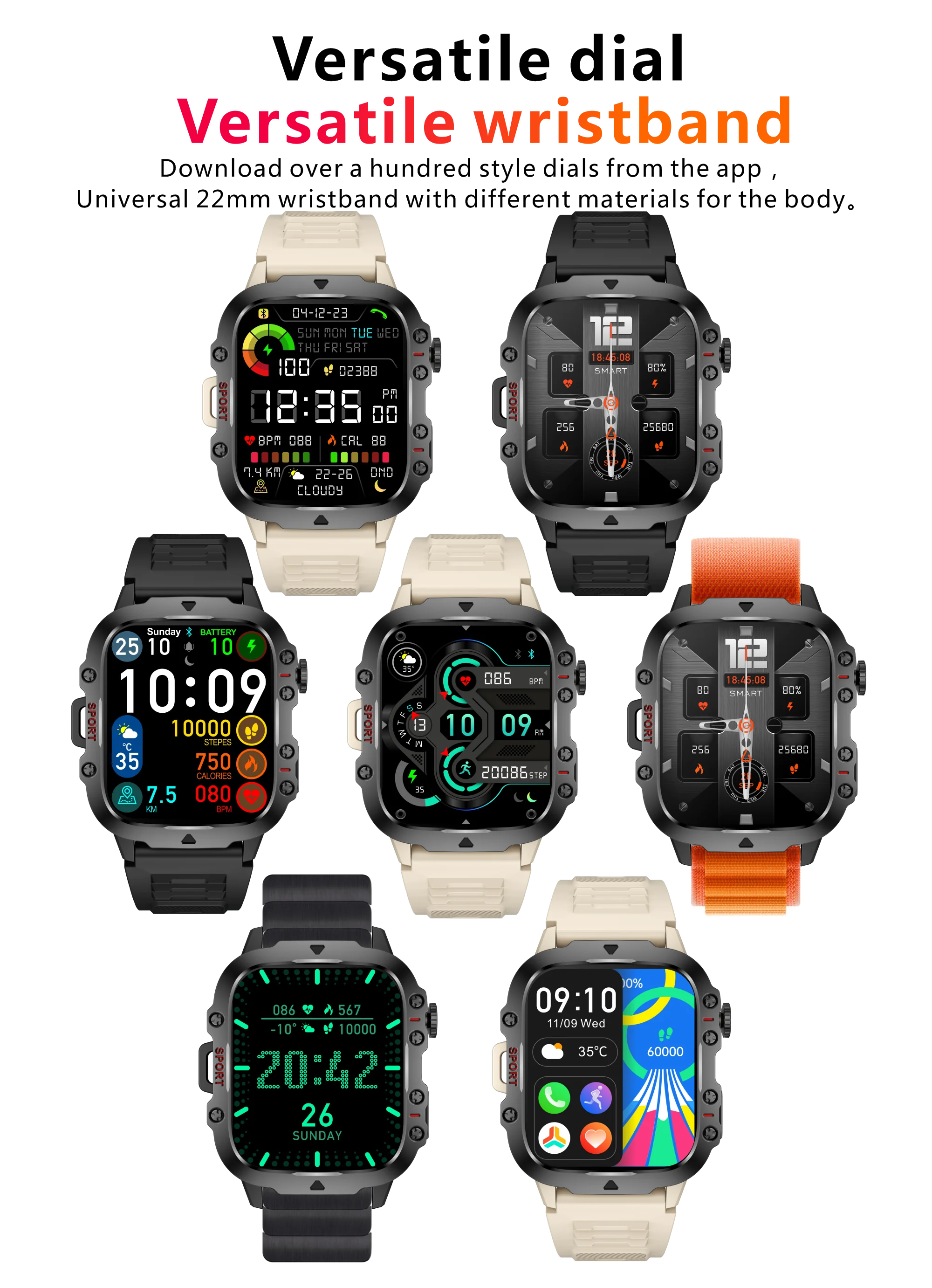 Llamada Bluetooth, visualización de SMS, recordatorio de notificaciones, monitor de frecuencia cardíaca, monitor de SpO2/presión arterial/sueño, entrenamiento respiratorio, modos multideportivos, podómetro, distancia, calorías, clima, asistente de voz con IA, recordatorio de vibración, linterna, pantalla de reloj, despertador, SOS, juegos, calculadora, música, cámara remota, dial versátil, fondo de pantalla del dial, recordatorio de sedentarismo, recordatorio del ciclo menstrual femenino, enlace con un solo clic, brillo Ajuste, levante la mano para encender la pantalla, modo No molestar, busque el reloj.
